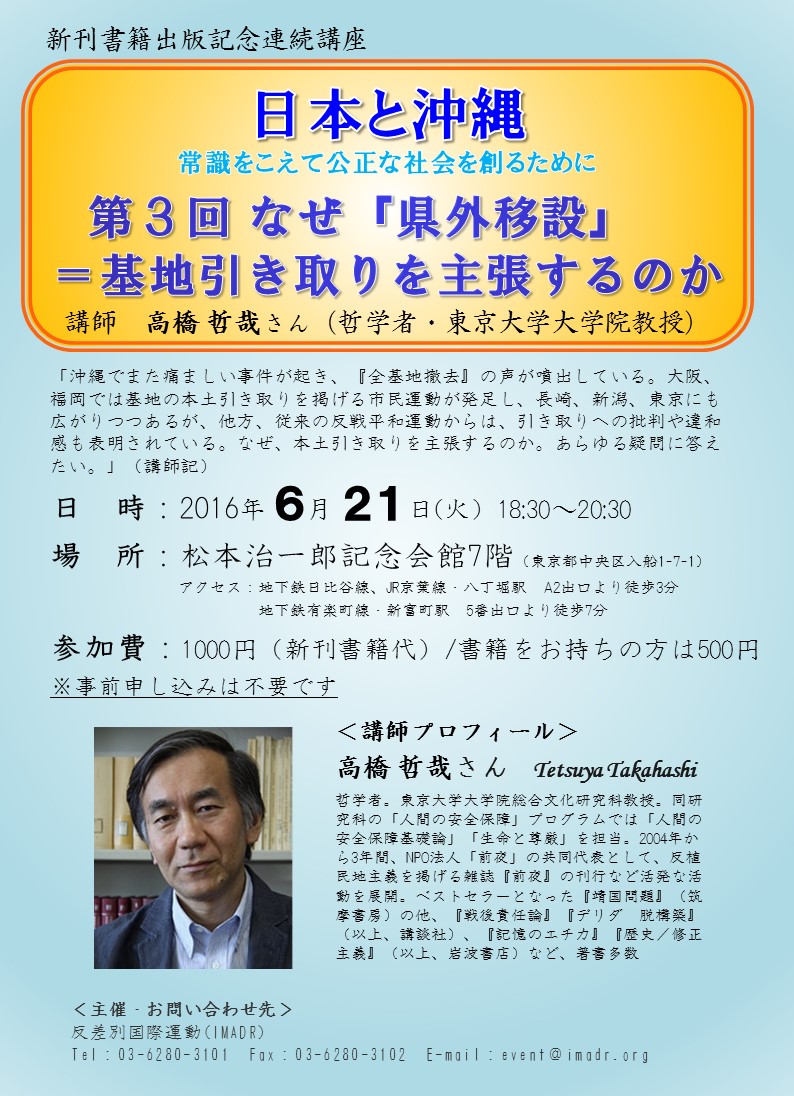 【イベント】第3回書籍出版記念講座「なぜ『県外移設』=基地引き取りを主張するのか」(6/21、東京)