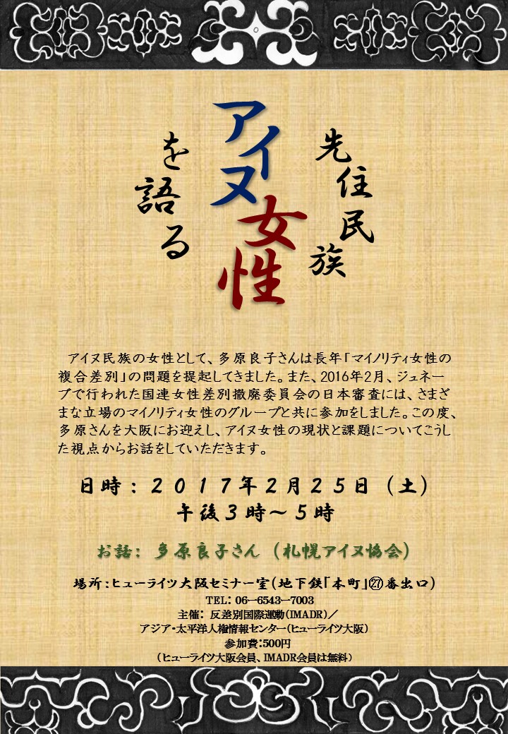 参加費:500円(ヒューライツ大阪、IMADR会員は無料)