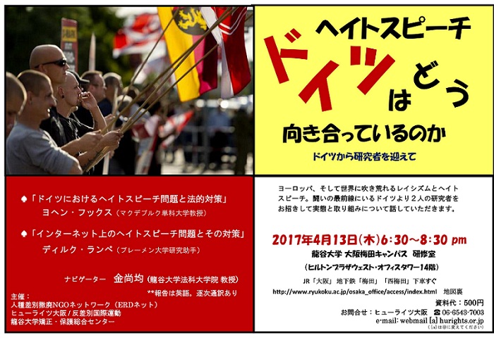 「ヘイトスピーチ:ドイツはどう向き合っているのか」ドイツから研究者を迎えて(4/13、大阪)