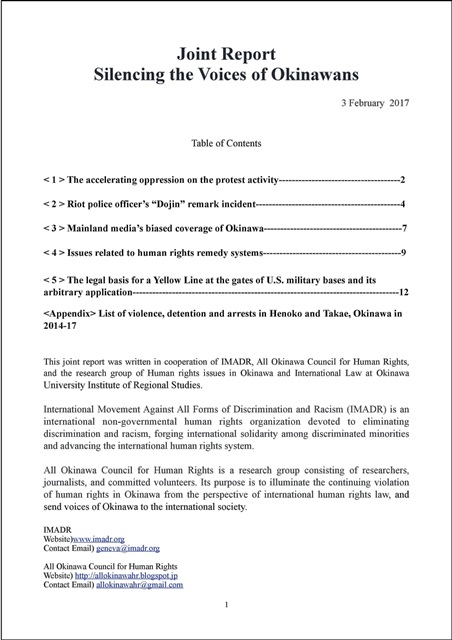 IMADRは、沖縄国際人権法研究会と共同で「沈黙させられる沖縄の声」に関する報告書を作成し、国連人権高等弁務官事務所(OHCHR)に提出しました。