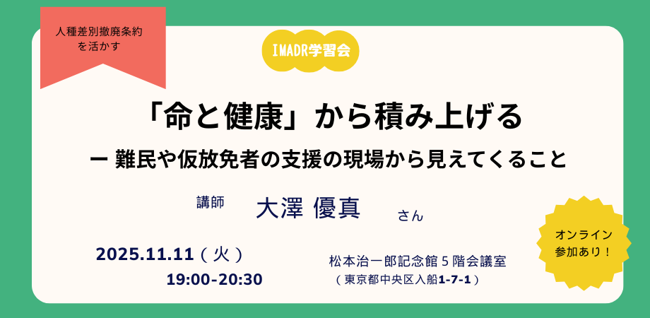 IMADR学習会「命と健康」から積み上げる ー 難民や仮放免者の支援の現場から見えてくること